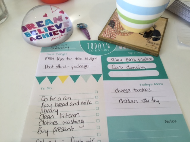 Every morning (give or take a day or two), I write a list of the things I need to do. I prioritise them and then I schedule out most of my day. There is no whitespace (don’t judge me too harshly, it’s not all work stuff, I schedule in fun stuff too!) because what will I do with this white space if I haven’t thought about that already? What if the kids just hang off me saying “I’m bored”? if I haven’t scheduled out the chores maybe they won’t get done or I’ll forget something important? What if we miss out on doing something because I didn’t organise it?